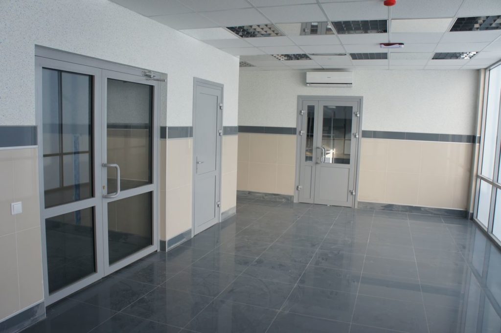 От качества заполнителя зависит, насколько эффективно преграда будет препятствовать распространению высоких температур. Материал должен быть негорючим и стойким к температурным воздействиям. В комплектацию противопожарной алюминиевой двери также входят уплотнители, ручки, замки и иные элементы фурнитуры. Дополнительные фурнитурные детали: доводчики, отбойные пластины, пороги разных типов.