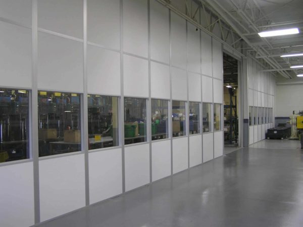 Противопожарные перегородки для цехов могут изготавливаться как в полностью остекленном варианте, так и в частично остекленном исполнении. Основное предназначение таких конструкций — это разделение общего помещения на несколько отдельных рабочих зон. При этом преследуется несколько целей: